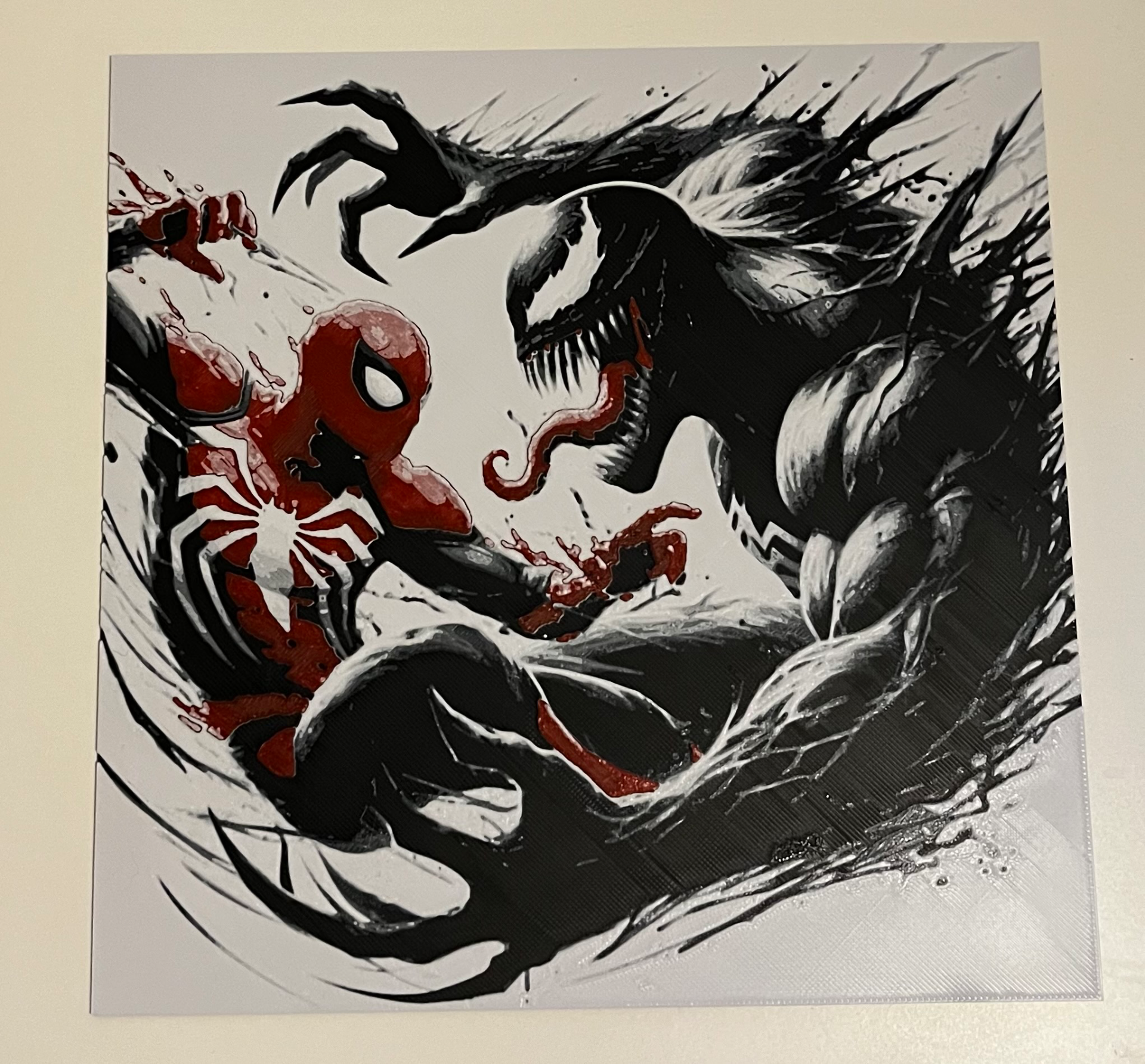 Spider-Man vs Venom – HueForge 12″×12″ 3D Printed Wall Art